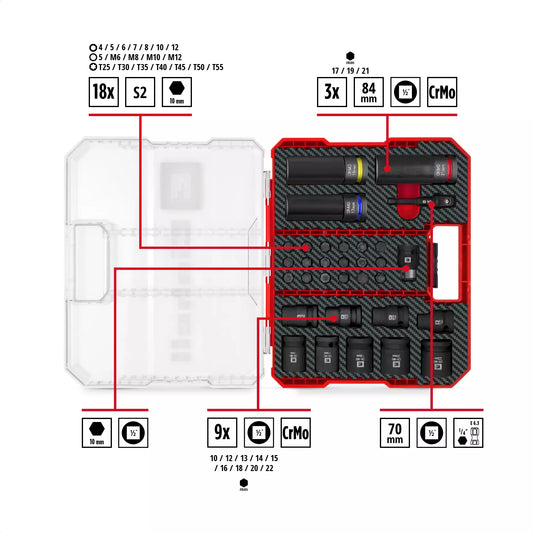 Juego de 20 puntas de atornillar y vasos de impacto KWB 49118584