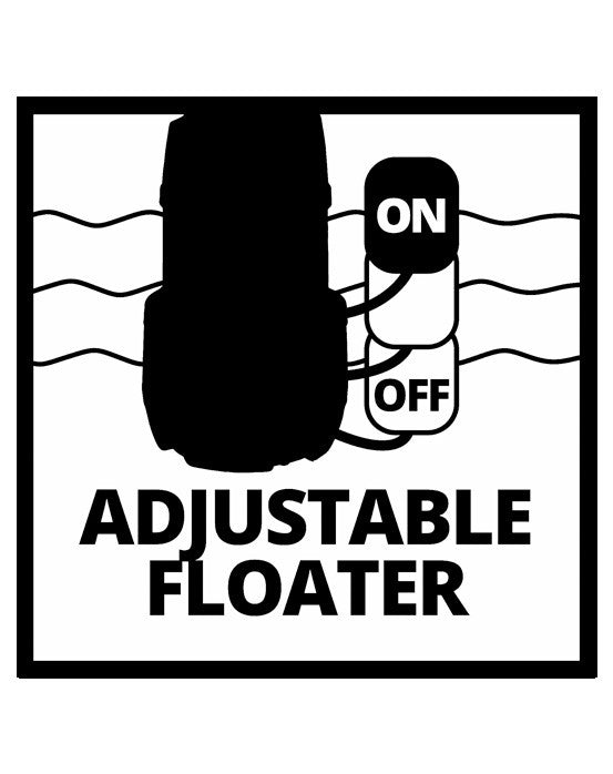 • El interruptor de flotación ajustable de forma continua enciende y apaga automáticamente la bomba para un nivel de agua previamente ajustado.