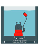 • La carcasa de la bomba es de plástico robusto y resistente a los golpes. La práctica asa de transporte permite transportar la bomba de forma sencilla.