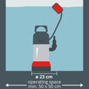 Con una potencia de 500W, la bomba impulsa el agua sucia a una profundidad de inmersión máxima de cinco metros hasta ocho metros de altura. Se pueden bombear hasta 12.000 litros por hora con el agua a una temperatura de hasta 35 grados Celsius.
