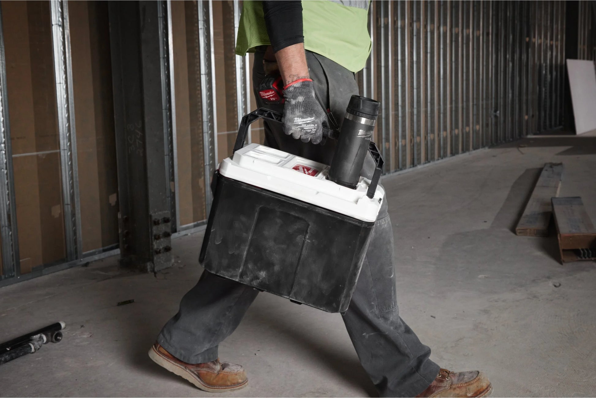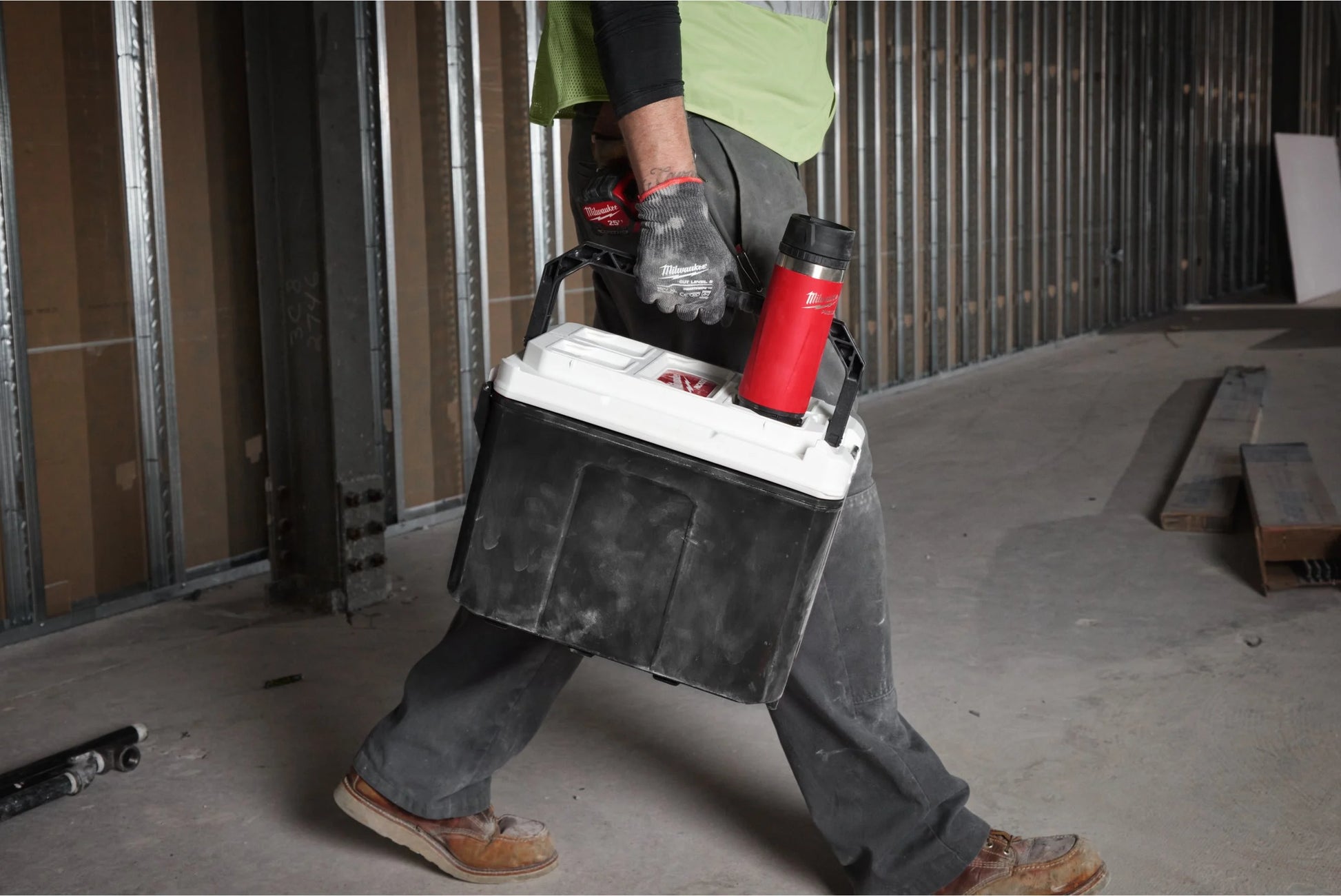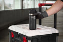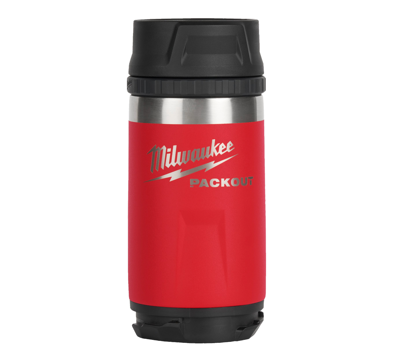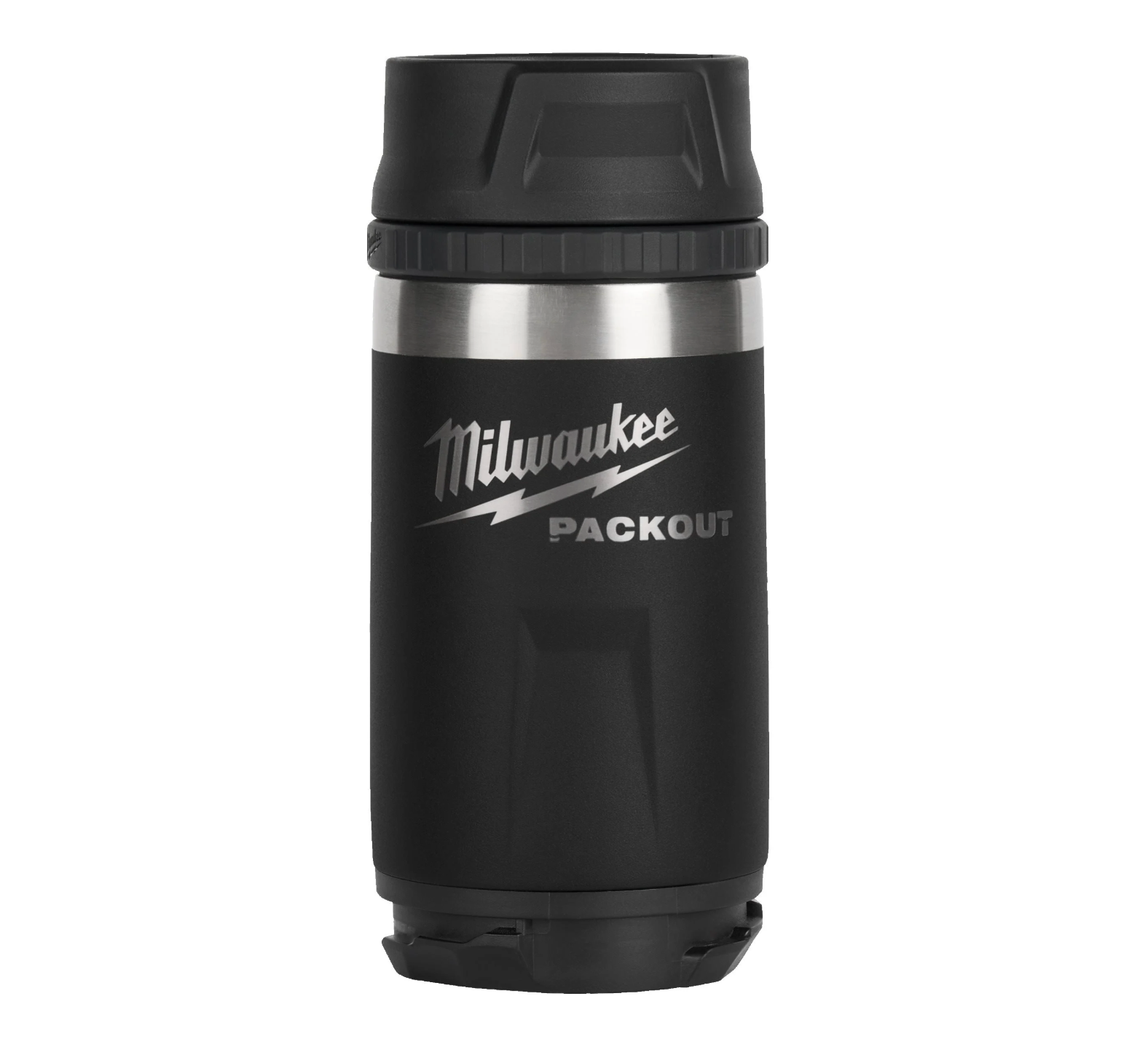 El termo PACKOUT de Milwaukee es una botella térmica o vaso aislante diseñado para integrarse con el sistema modular PACKOUT, de modo que puedes fijarlo encima de cajas o maletines PACKOUT para mantener tu bebida segura en obra o en el taller. Está fabricado con materiales resistentes, pensado para soportar entornos de trabajo exigentes, y mantiene las bebidas frías o calientes durante muchas horas.