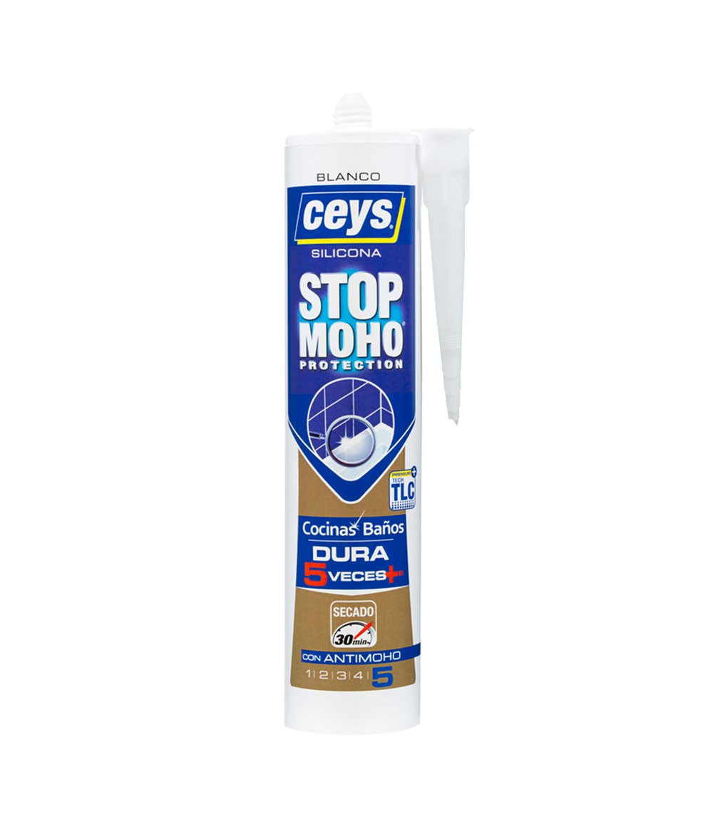 Silicona superior para baños y cocinas única gracias a la combinación de 2 exclusivas propiedades:  Tecnología TLC, que evita que el moho y la suciedad se deposite sobre la silicona, con lo que no ennegrece y permanece limpia y sin moho 5 veces más tiempo que una silicona normal cocinas y baños. Antimoho extra fuerte nivel 5. Seca en solo 30 minutos con lo que permite ducharte rápidamente sin esperar 24 h. ¡Juntas limpias y blancas durante más tiempo!