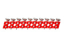 - Con clavos estándar de 20 mm, una sola batería completamente cargada puede disparar hasta 600 clavos o 245 metros de perfiles de paneles de yeso (clavos separados a 40 cm de distancia)