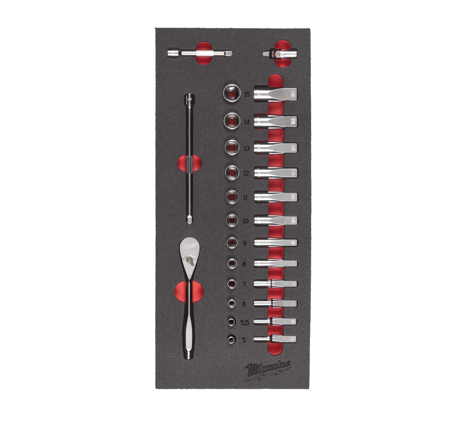 Espuma con Carraca y Vasos de 1/4" 28pcs Milwaukee