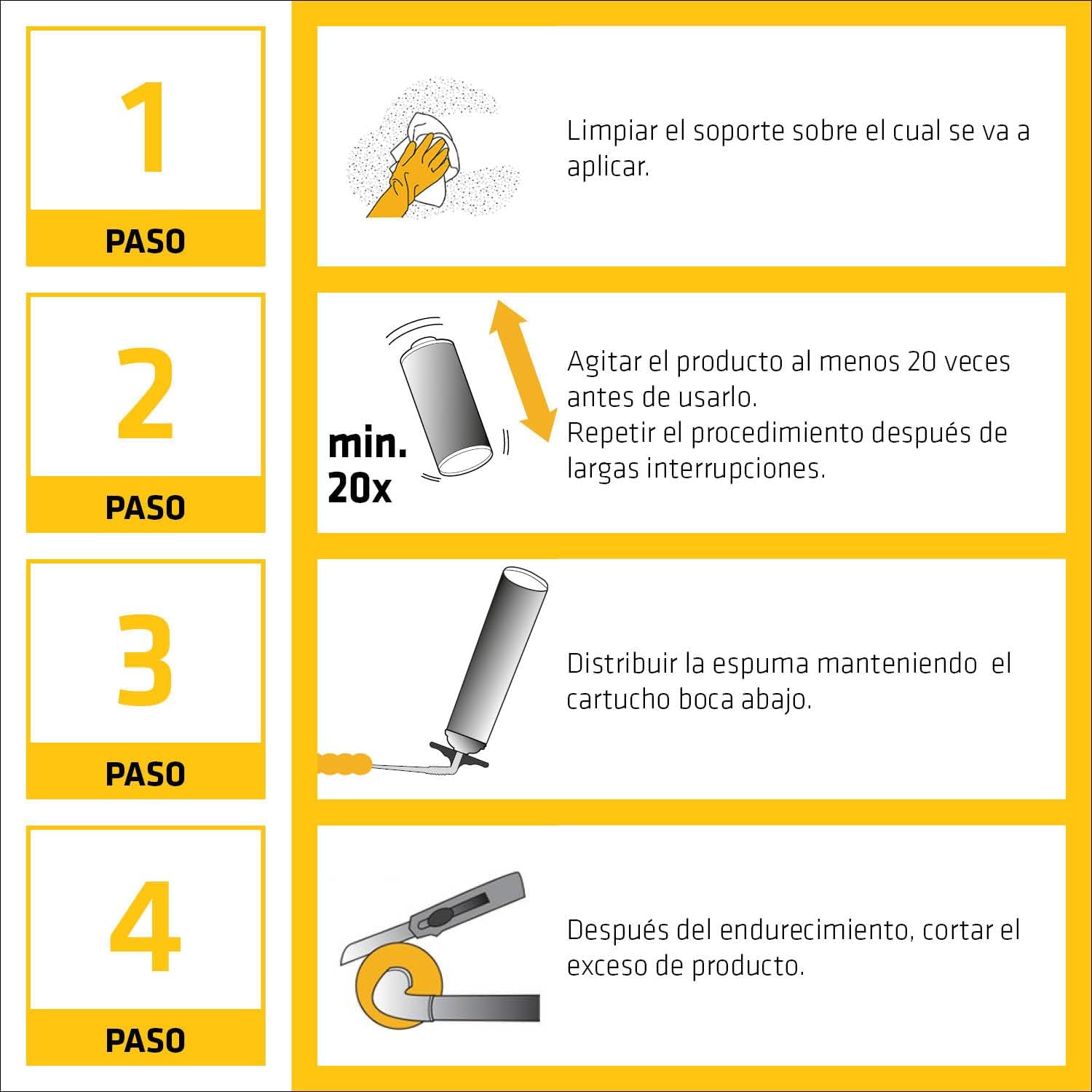Esta espuma se presenta lista para usar y ofrece buen aislamiento térmico y acústico, así como buena adherencia a múltiples materiales de construcción