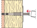 La fijación de enlucido fischer FIF-PN consta de un manguito de tapón gris con disco octogonal preformado y un clavo de plástico. El FIF-PN se ajusta con un martillo.