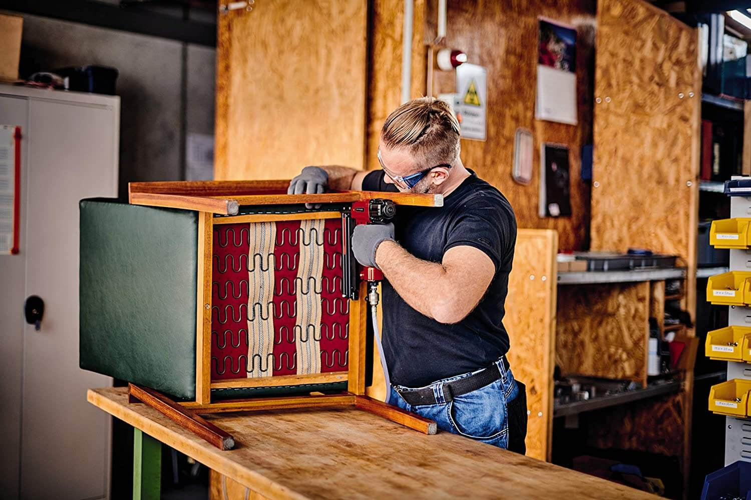 • El asa antideslizante permite un trabajo seguro y agradable; a este respecto, la grapadora ofrece un mejor rendimiento desde un diámetro interior de manguera de 9 milímetros