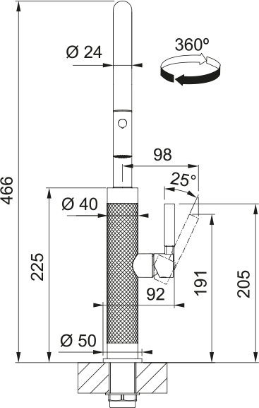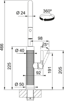 El grifo Mythos Masterpiece presenta un elegante patrón estirado en cuerpo del grifo con un diseño J con caño extraíble. Grifo con una funcionalidad sin límite. La maniobrabilidad del caño es fundamental para abarcar el mayor espacio de trabajo posible.