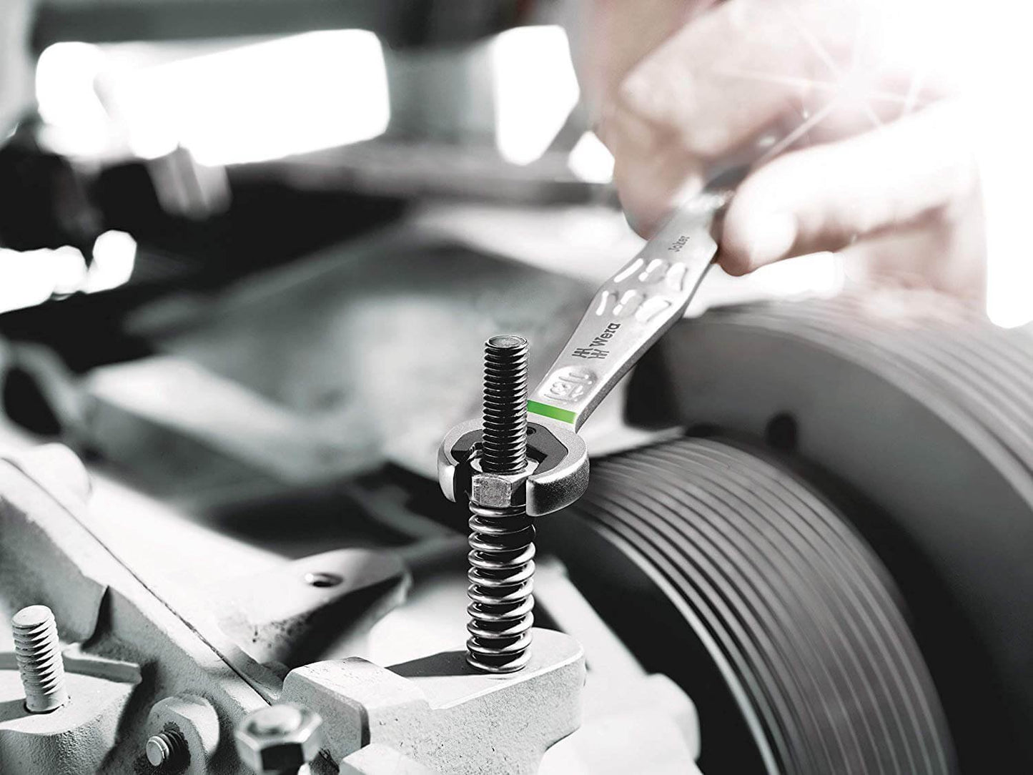 Juego de llaves combinadas con carraca de Wera, de alta calidad: todo lo que ha de saber hacer una llave. Y mucho más aún. Más rápida, mucho mejor y mucho más bella.