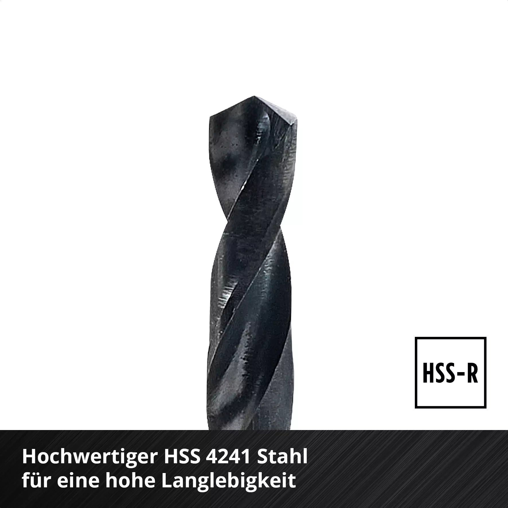 El Juego de brocas HSS-R LS de 6 piezas Einhell (modelo 49423006) es un conjunto práctico y eficiente, diseñado para perforaciones limpias y precisas en diversos materiales como chapa metálica, aluminio, plásticos y metales no ferrosos.