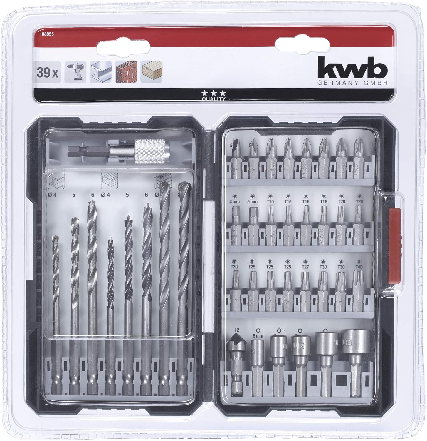 El Juego de brocas y puntas KWB de 39 piezas (modelo 49108955) es un conjunto versátil y completo, ideal para tareas de bricolaje y uso profesional. Organizado en una caja resistente, este set ofrece una amplia variedad de accesorios compatibles con taladros y atornilladores estándar.