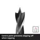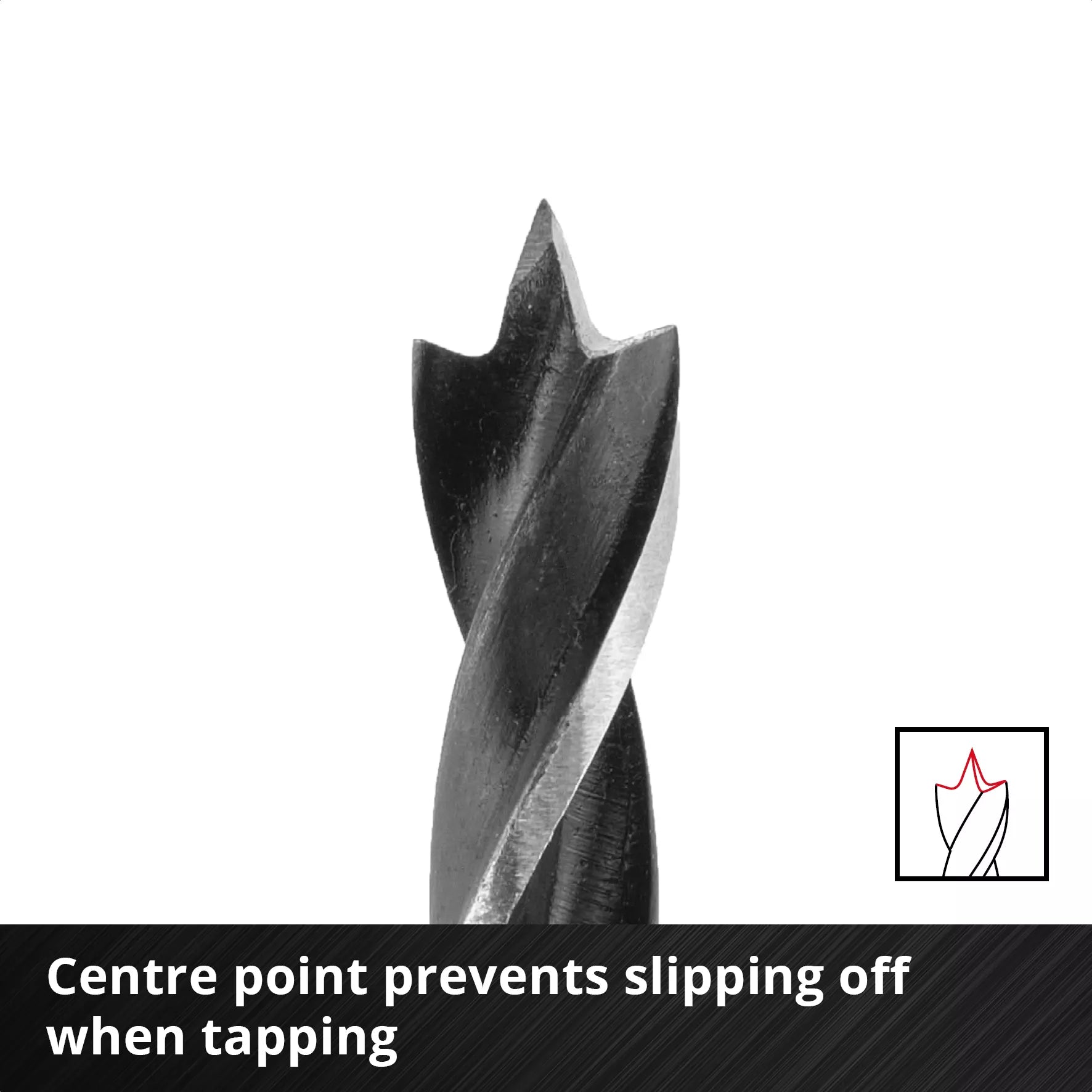 - 3 brocas para madera de 4, 5 y 6 mm, fabricadas en acero C45 con vástago E 6.3 y acabado negro bruñido.