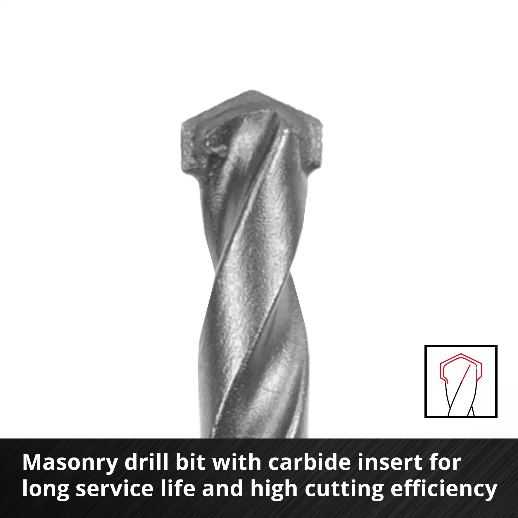 - 2 brocas para mampostería de 6 y 8 mm, fabricadas en acero para herramientas con inserto de carburo y vástago E 6.3.