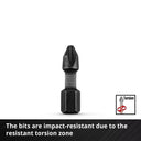 • 15 puntas resistentes al impacto de 25 mm con vástago C 6.3: