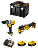 Kit Dewalt Taladro Percutor DCD996 + Multi-herramienta DCS356 + 2bat 5Ah + cargador + TSTAK VI DCK255P2