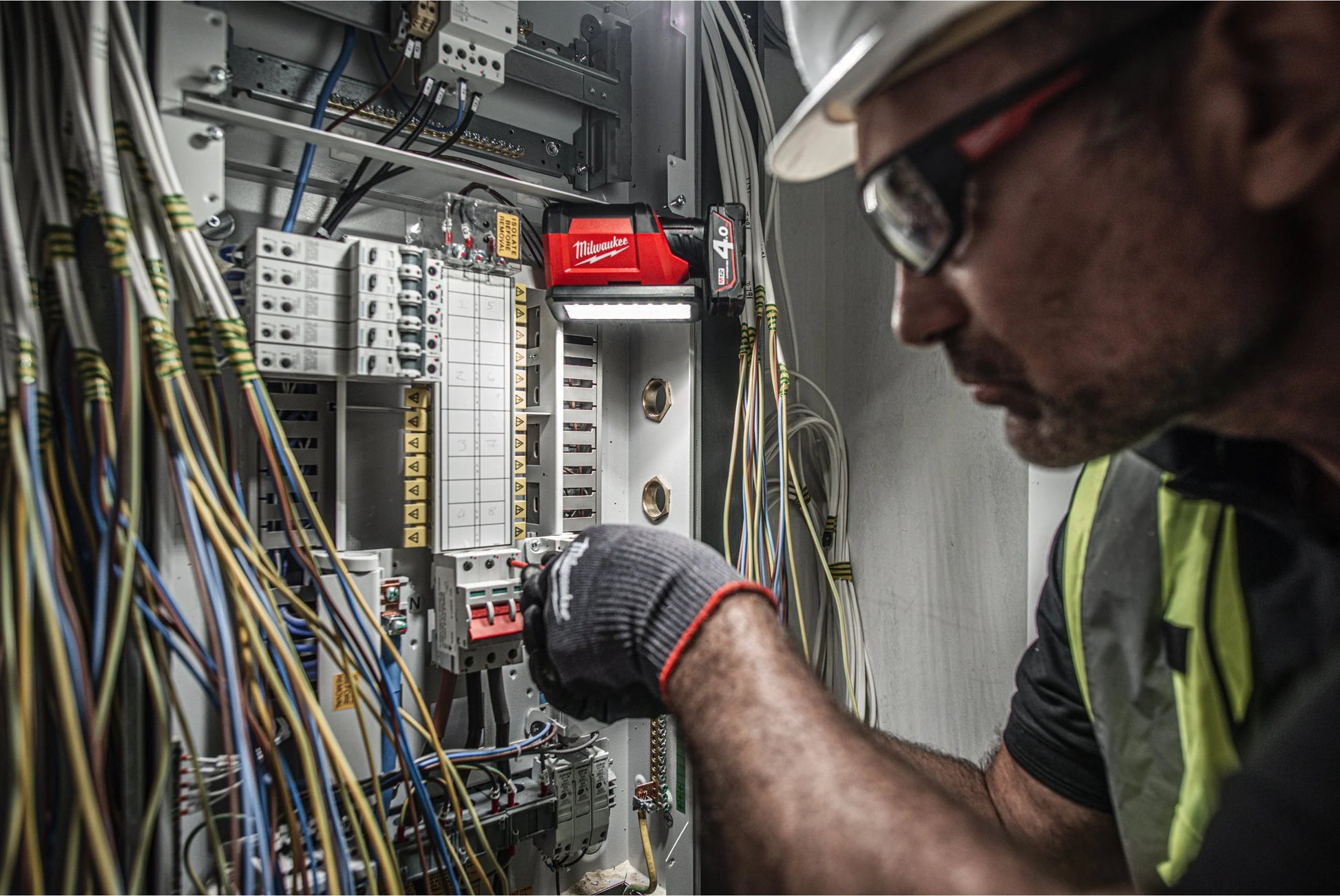Luz de área pivotante con hasta 700 lúmenes de alta definición TRUEVIEW. Presenta hasta 24 horas de autonomía con una batería M12 DE 4.0Ah.