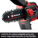 • La cubierta de cadena plegable garantiza la seguridad durante el trabajo con la motosierra para ramas con batería. Para proteger la espada se incluye una cubierta de espada para guardar la sierra.