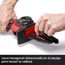 • Para facilitar el tensado de la cadena se entrega una llave hexagonal. Este está siempre a mano gracias al almacenamiento integrado en la carcasa.