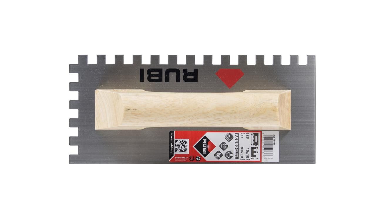 El peine Rubi 28 cm con mango de madera cerrado 10x10 es una herramienta manual para la colocación de materiales y acabados de bricolaje y construcción.
