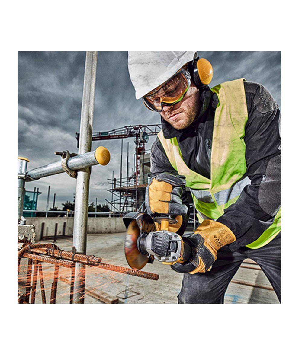 Mini-Amoladora a batería con sistema Brushless, con freno y embrague electrónico, para discos de 125 mm.