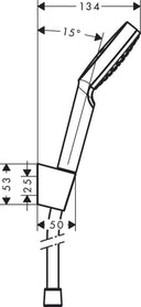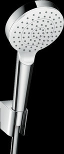 Set de soporte para ducha Crometta 26567400 en acabado cromo de Hansgrohe. Nos ofrece una tecnología muy innovadora, QuickClean, una función antical muy rápida, donde sus duchas cuentan con bultos de silicona que con solo frotar con los dedos desaparece la cal. También dispone de XXL Performance otra tecnología que te permite relajarte debajo del chorro de la ducha gracias a que simula una lluvia cálida de verano.