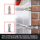 - Punta centradora pronunciada para una perforación precisa sin deslizamientos.