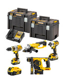Gran Set de Dewalt DCK483P3T que incluye Martillo Electroneumático DCH253 + Taladro Percutor DCD996 + atornillador de impacto DCF887 + Amoladora DCG412 + 3 bat 5,0 Ah + cargador DCB1104 + 2 TSTAK VI.