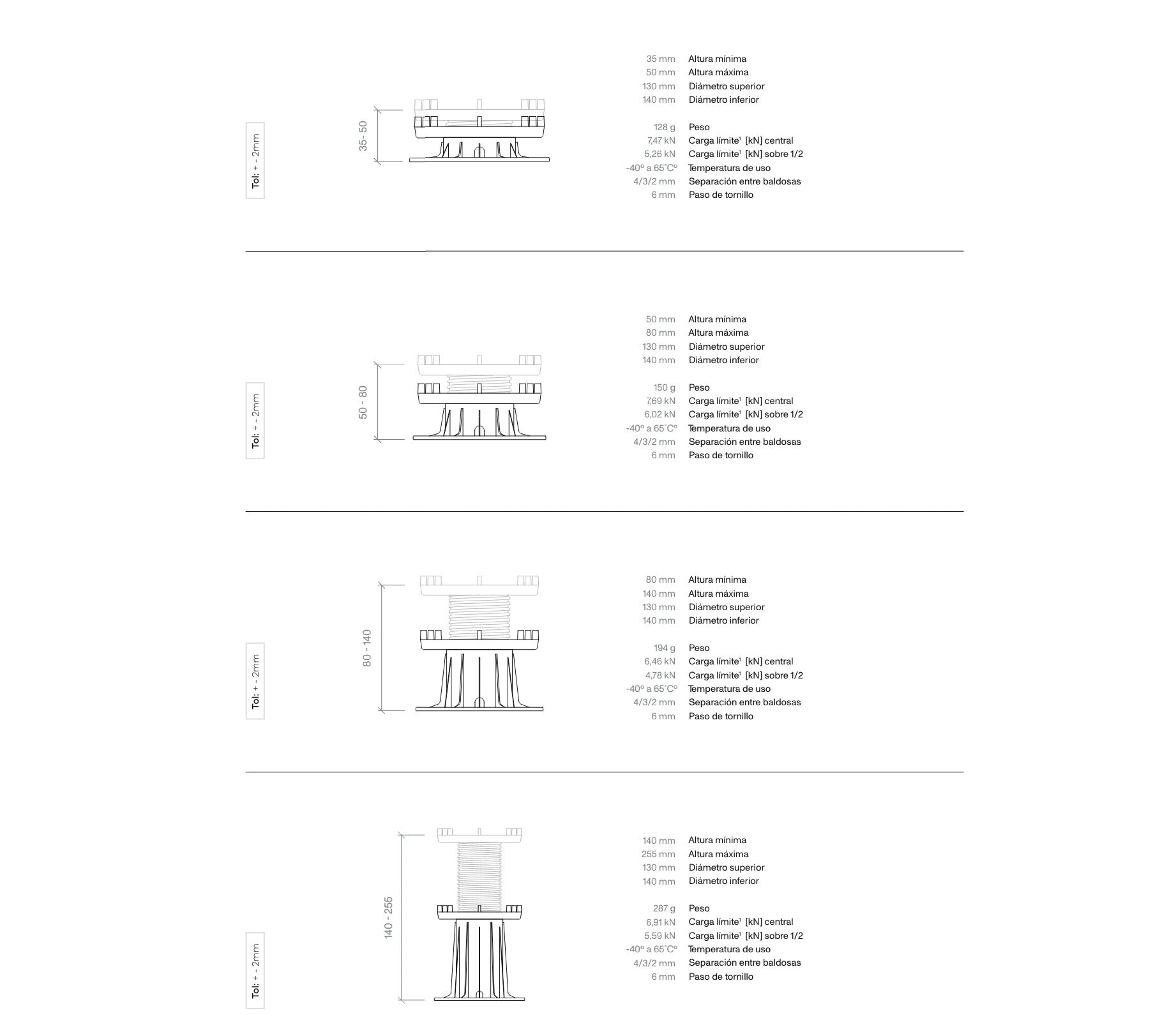 Desde los 34mm del modelo más bajo (BSP1) hasta los 655mm del BSP4 + 4 casquillos. En los soportes BSP de Peygran encontrarás la solución para tu proyecto de pavimento elevado, adaptándose a cualquier necesidad.