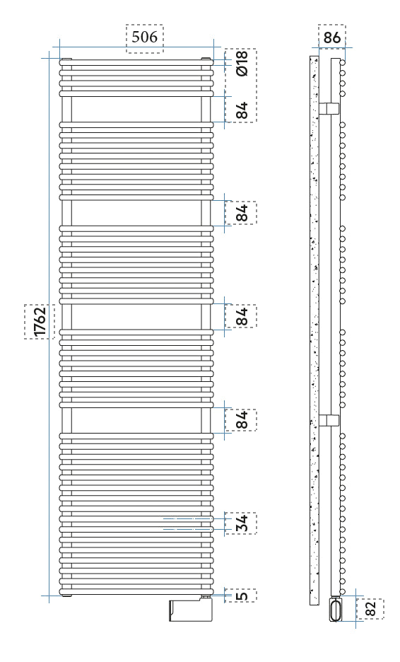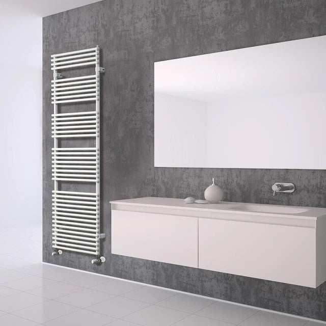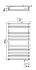 FLAUTO Eléctrico es un radiador toallero eléctrico de acero para baño. Disponible en 4 alturas y en ancho de 506 mm.