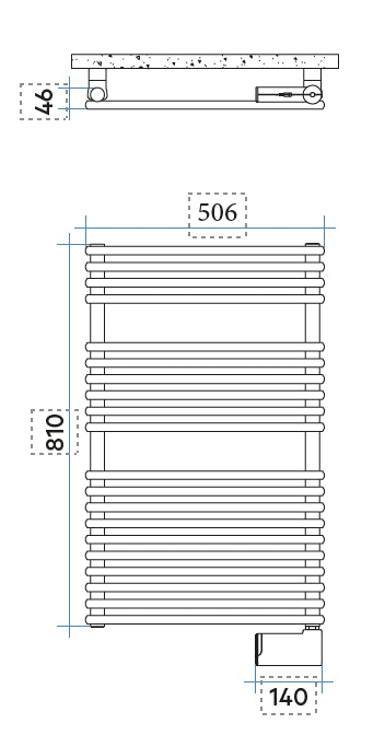 - Radiador toallero en acero.